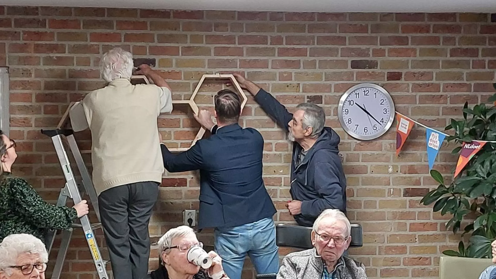 Tijdens NL Doet op vrijdag 15 maart heeft Nijenstede zelfgemaakte wandkasten, vervaardigd door bewoner meneer Van der Plas, geïnstalleerd. De wandkasten die thematisch ingericht zullen worden, geven een nieuwe dimensie aan de ontmoetingspleinen in Nijenstede. Wethouder Bram Harmsma kwam de wandkasten met eigen ogen bewonderen en hielp een handje mee bij het ophangen.