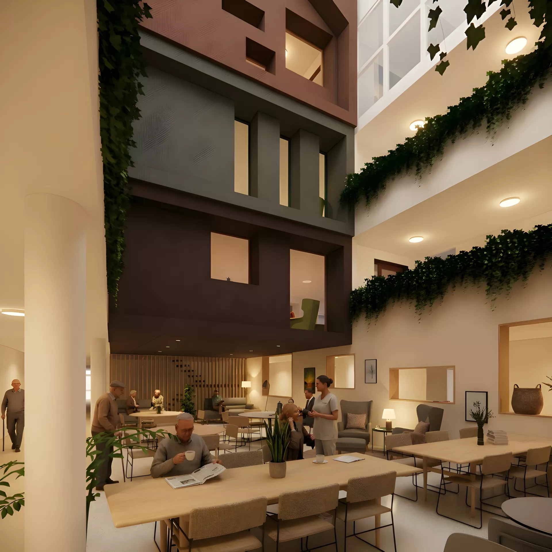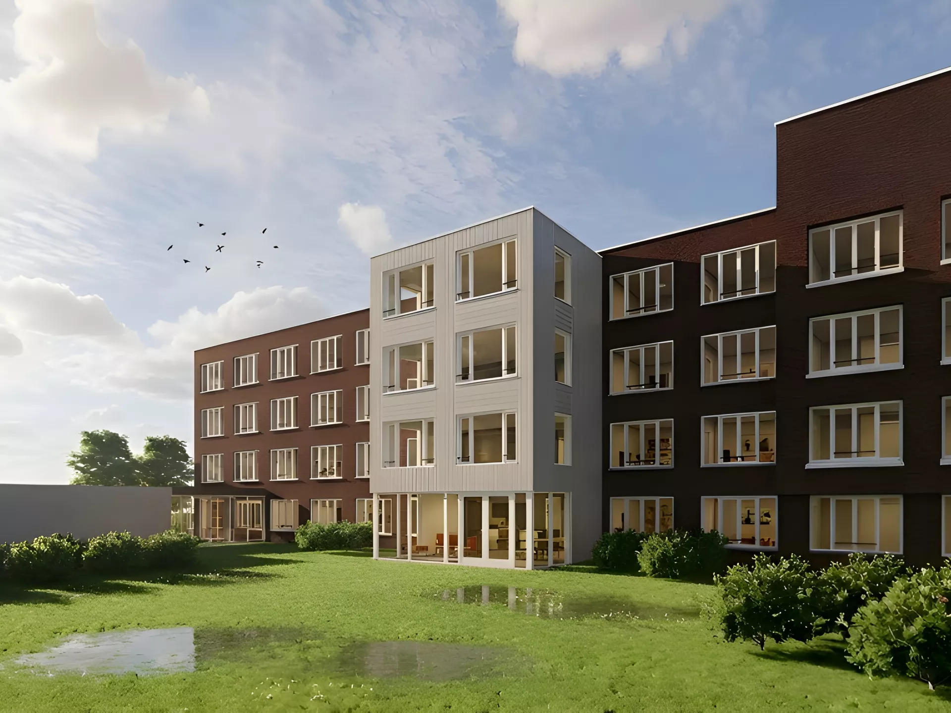 - Een deel van het atrium wordt omgebouwd tot huiskamer. Hiervoor wordt er uitgebouwd naar de binnentuin.