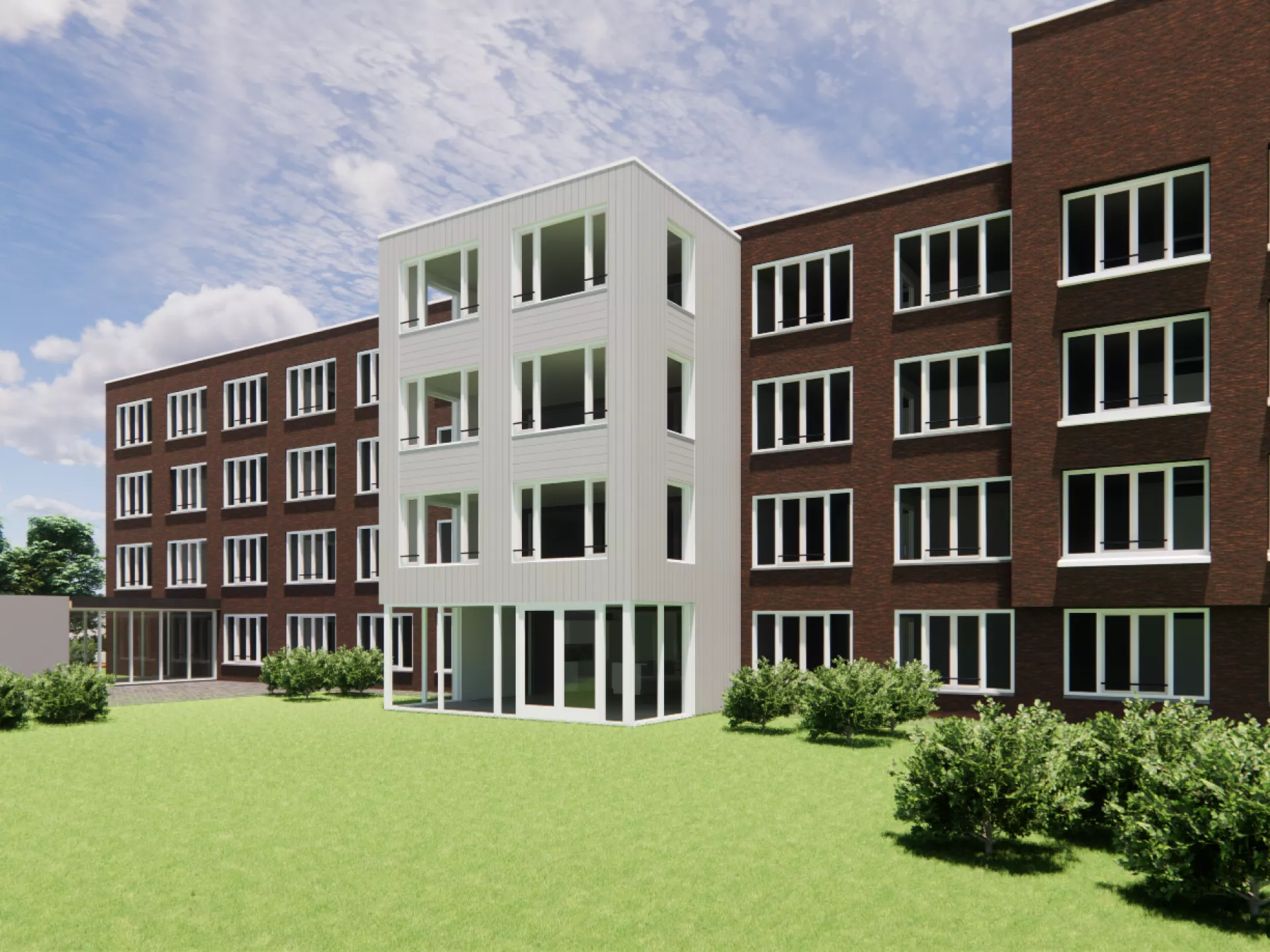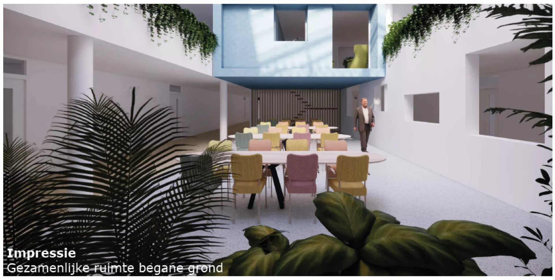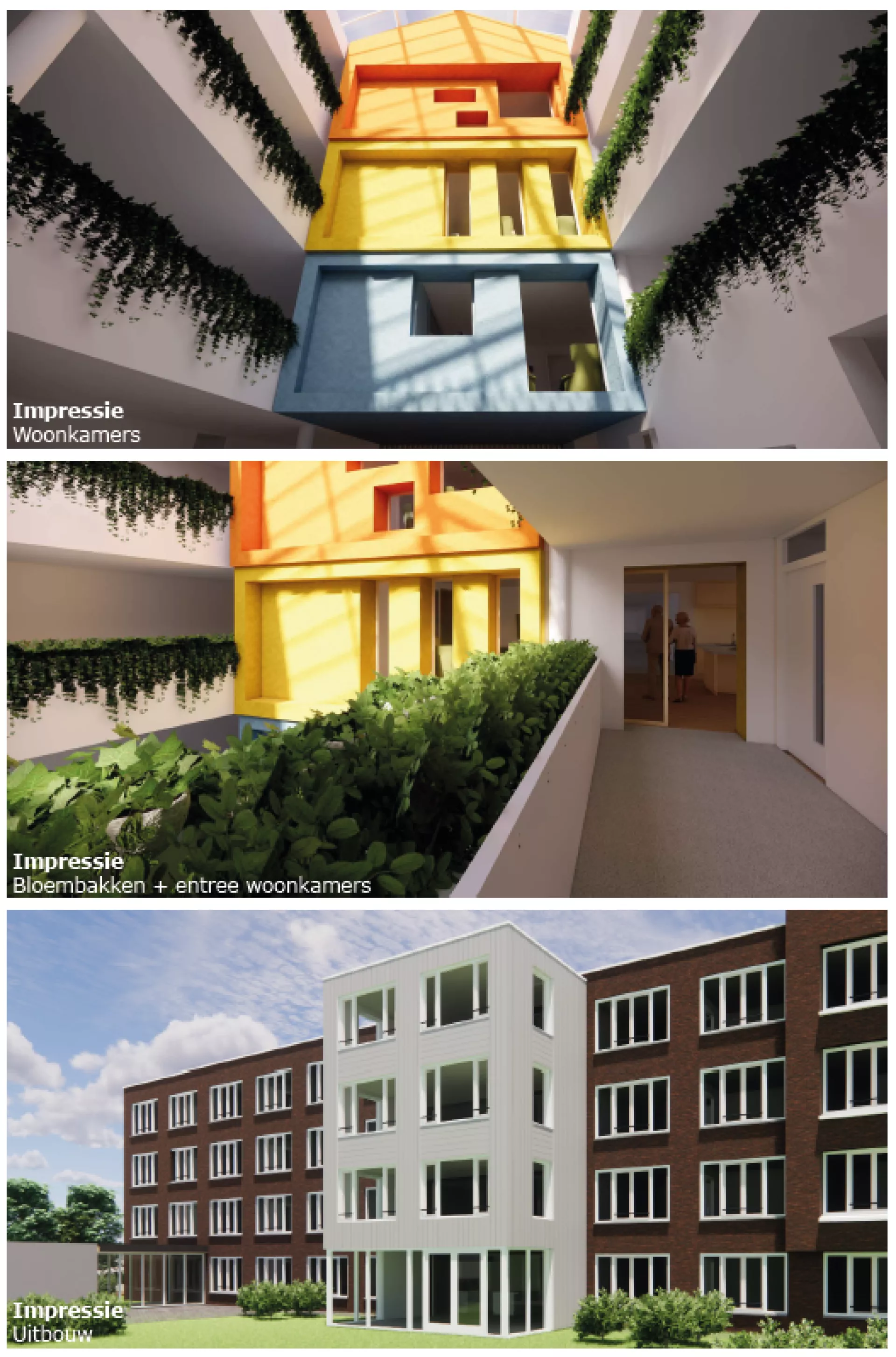 - Een deel van het atrium wordt omgebouwd tot huiskamer. Hiervoor wordt een uitgebouwd naar de binnentuin.