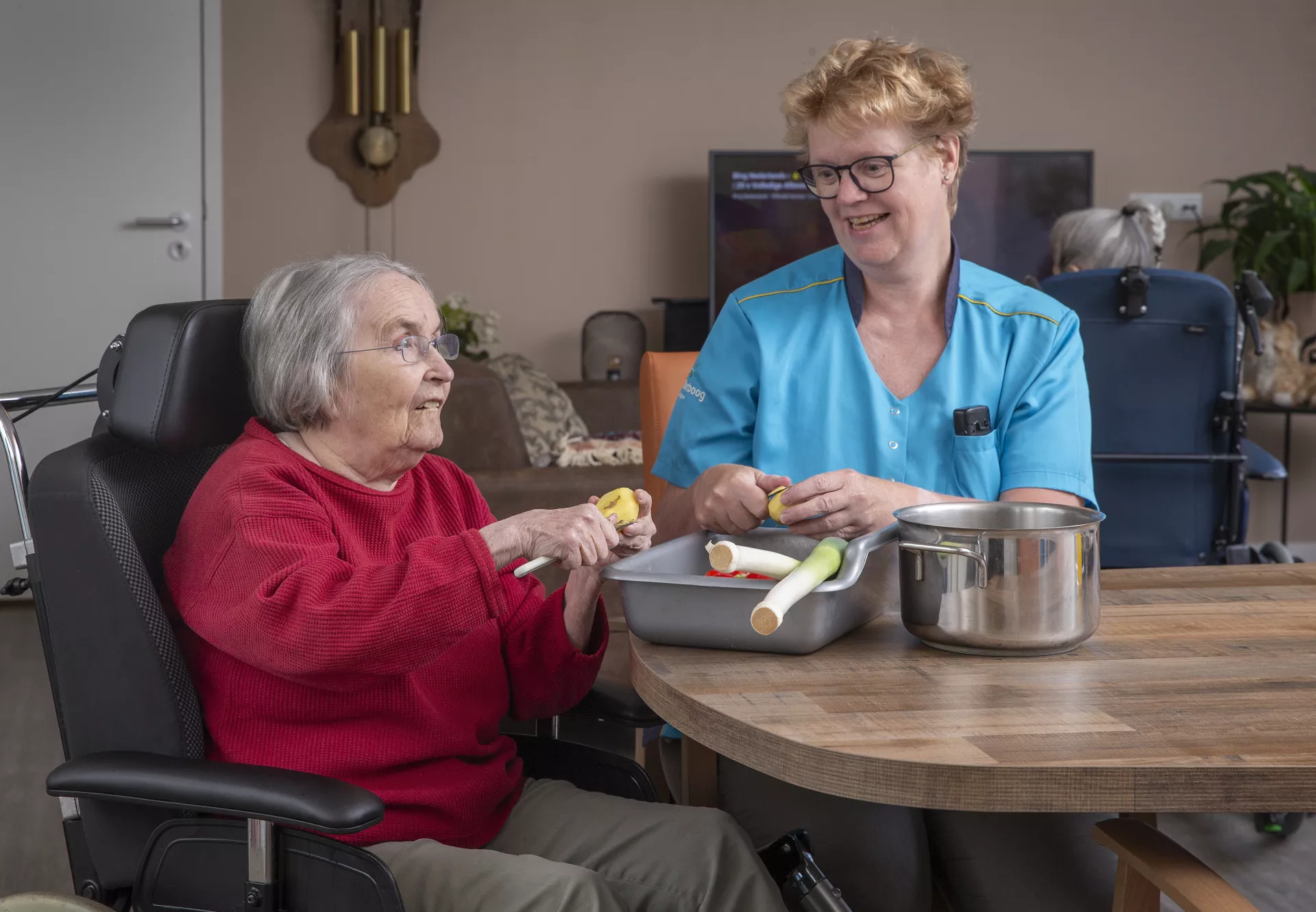 In de huiskamer vinden dagelijkse bekende activiteiten plaats, die onderdeel van de dag zijn, bijvoorbeeld ontbijten, de krant lezen, afwassen, koffie/thee drinken en elke dag wordt er een warme maaltijd gekookt. Wanneer u dat nog kunt en wilt, vervult u een direct of indirecte rol bij dergelijke activiteiten.