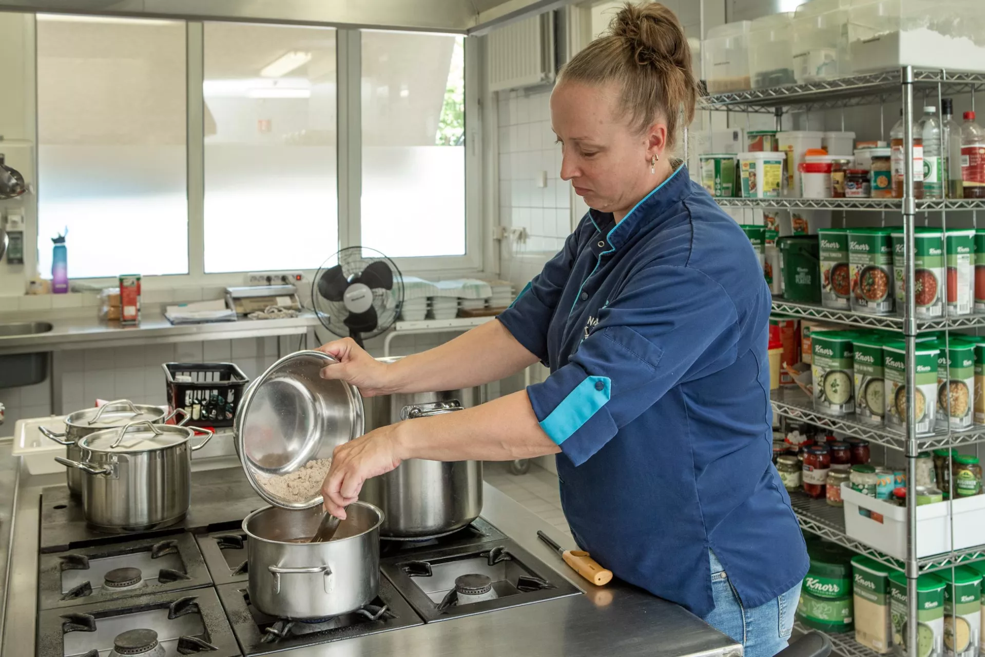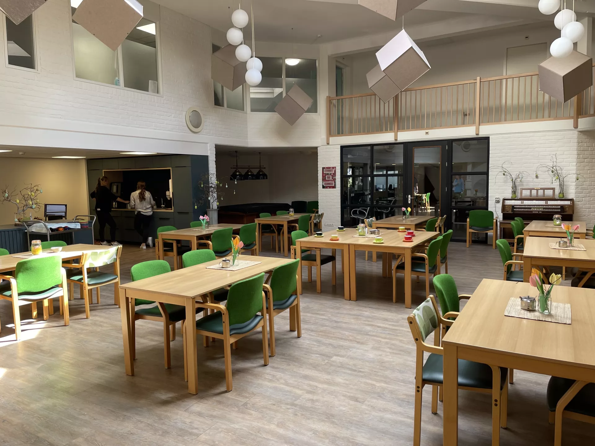 De bewoners van ‘t Vonder eten tijdens de warme maaltijd in de gezamenlijke huiskamer of in de grote zaal. Het ontbijt wordt in het eigen appartement gegeten en de broodmaaltijd ’s avonds in de gezamenlijke huiskamer. Bewoners uit de aanleunwoningen en gasten van buitenaf kunnen voor de warme maaltijd terecht in de centraal gelegen recreatiezaal op de begane grond. U krijgt bij ons gezonde maaltijden die op een speciale wijze verwarmd worden zodat de versheid altijd gegarandeerd is.
