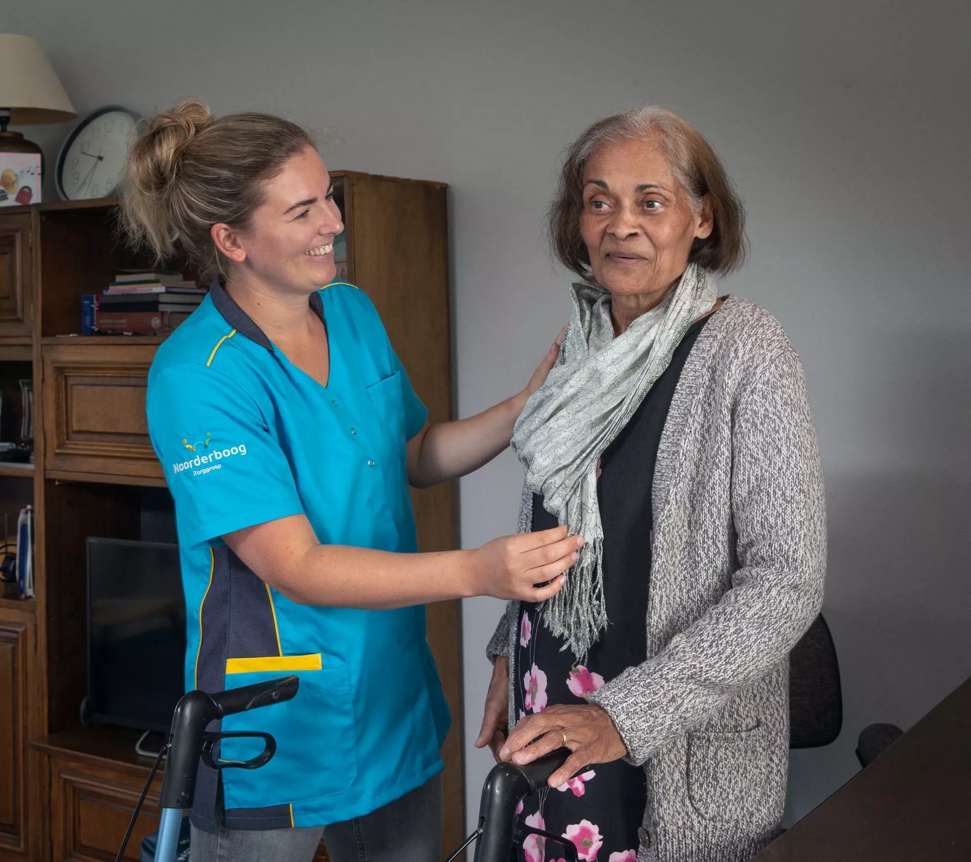 De thuiszorgmedewerkers van Noorderboog maken zich op voor een nieuwe manier van zorgverlening: Volledige verzorging thuis. Noorderboog biedt het zogeheten VPT (Volledig Pakket Thuis) in de eigen aanleunwoningen. Dat geeft een andere dimensie aan het werk. Voor de cliënt is het fijn dat hij of zij in de aanleunwoning kan blijven wonen en niet hoeft te verhuizen naar het verzorgings- of verpleeghuis. En voor jou is het fijn dat je geen afscheid hoeft te nemen van je cliënten want je geeft de zorg nog steeds bij hen in eigen huis. Bovendien is het prettig dat de intensievere zorg in een veelal ruimere woning kan worden gegeven. Daarbij, het blijft gewoon leuk om ‘van deur tot deur’ te gaan en je niet het gevoel krijgt dat het om verpleeghuiszorg gaat. Toch zal het wennen zijn, want VPT is 24-uurszorg. En dat kan voor langere diensten zorgen. Bij VPT word je meer gekoppeld aan cliënten. Maar tijd voor het praatje blijft! De cliëntwaardering voor onze thuiszorg is goed en dat streven blijft er absoluut. VPT of niet.