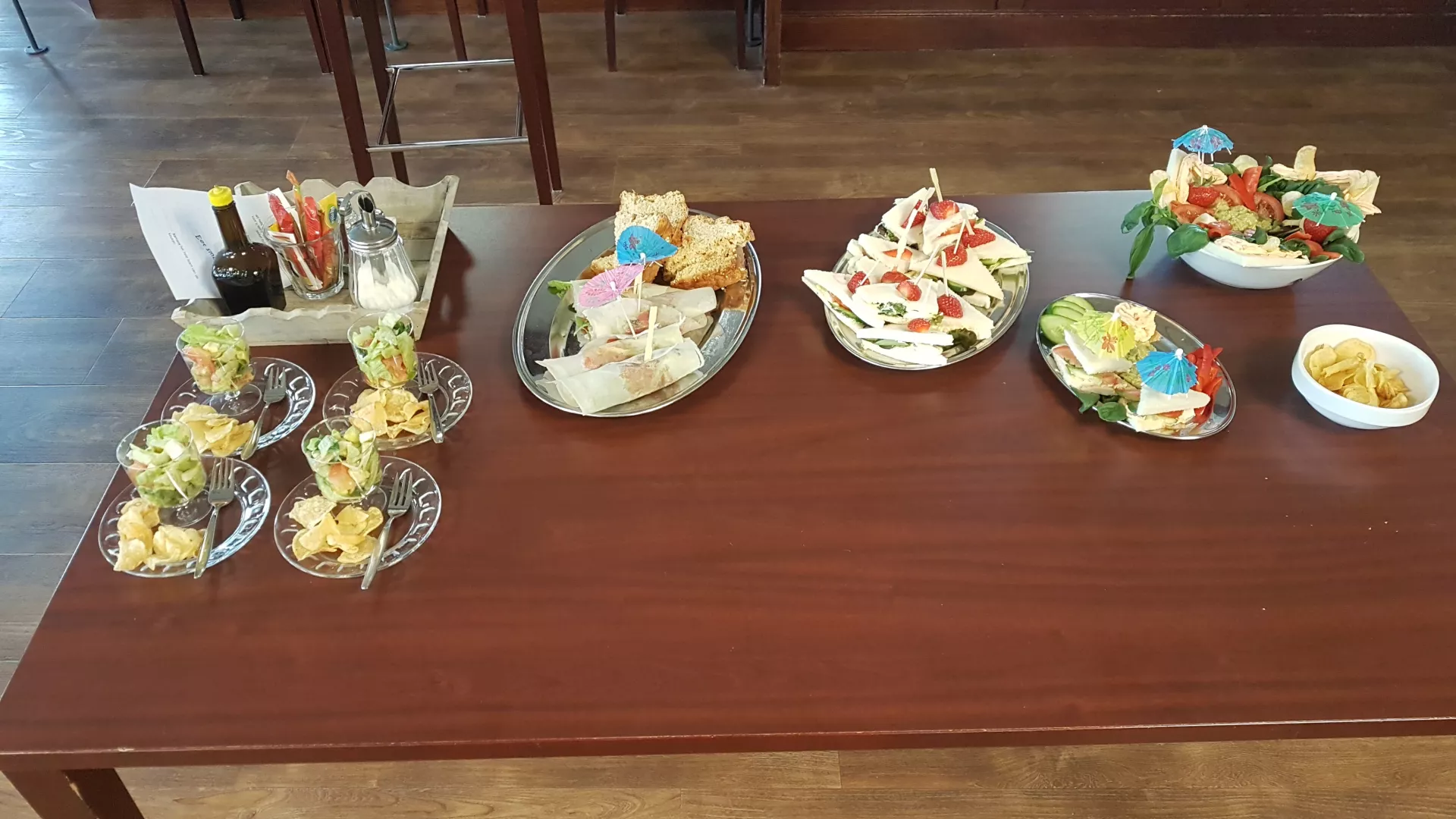 De tweede bijeenkomst was erg leuk. Na een korte evaluatie en wat kernkwadranten (wat doe je goed, wat niet e.d.), moesten we groepjes vormen en kregen we per groep een blackbox. Deze box bestond uit een doos met diverse ingrediënten. De bedoeling was om iets lekkers te fabriceren voor Edu. In onze doos zat een suikerbrood, zalmsalade, mozzarella en een spuitzak roomkaas. Hoe kun je daar nou in vredesnaam iets lekkers van maken?... Totdat een groep die alleen maar een black box met brood had, bij ons kwam of wij niet iets zouden willen ruilen. Pas toen ging er bij ons ook een lichtje branden, want het ging immers over samenwerking! Opvallend hoe iedere groep hier mee om ging. Aan het einde van deze dag hield Yacoubou, leidinggevende zorg & dienstverlening in Reestoord, nog een praatje over de toekomstige Brasserie. Daaruit volgden nog wat vragen die later in kleinere groepsvorm besproken gaan worden.